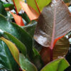 So Many Colors, This philodendron has leaves ranging from orange to yellow to red to green. Leaves begin with shades of orange and the change to a creamy green and red vines of this variety are bright lipstick red. This fast-growing philodendron is easily going to be the highlight of the garden.